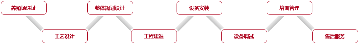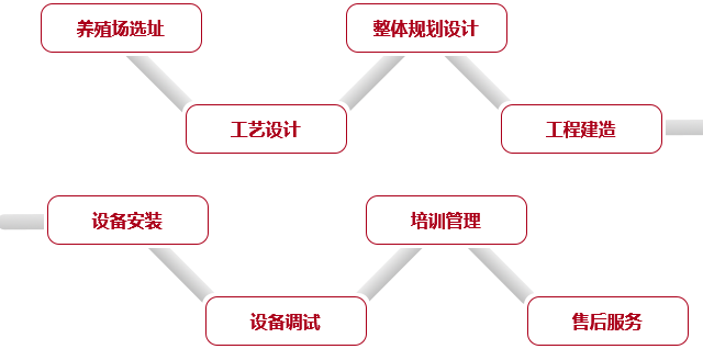 為客戶提供從養(yǎng)殖場選址、規(guī)劃設(shè)計、工程施工、設(shè)備安裝到后期培訓(xùn)維護等解決方案,周到細(xì)致的為客戶打造出具備國際先進水平及高性價比的現(xiàn)代化養(yǎng)殖場, 打造精品“交鑰匙”工程。根據(jù)不同區(qū)域的自然環(huán)境條件及客戶投資需求,因地制宜地采用適宜的生產(chǎn)工藝及流程布局,是養(yǎng)殖場生物安全、生產(chǎn)高效的根本。